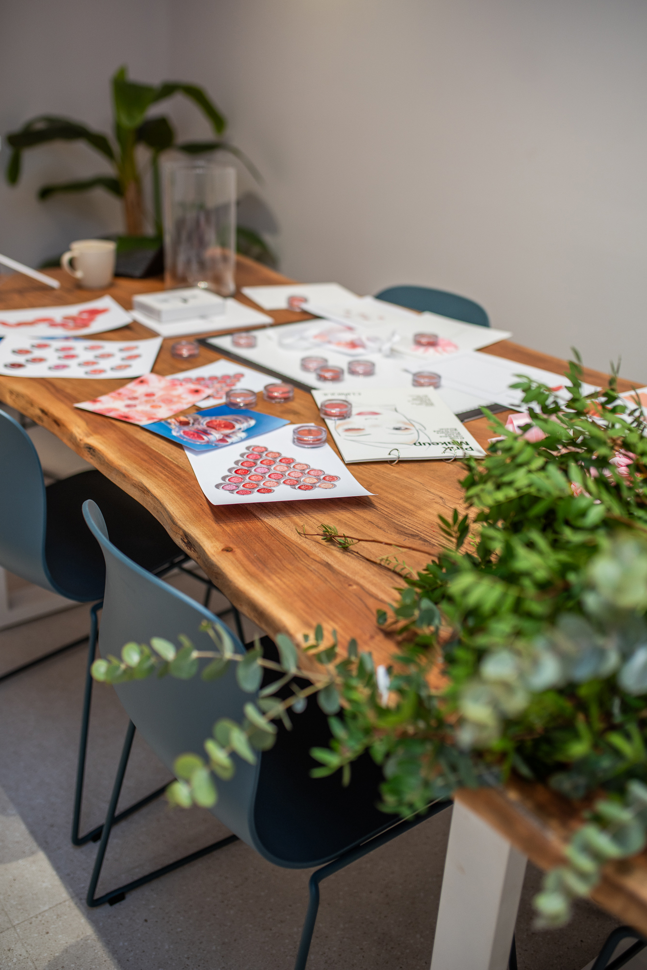- Large table + curated seating setup